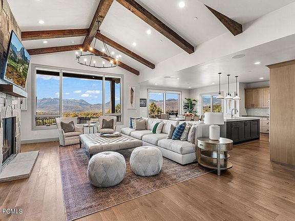 Walk into the threshold of this beautiful home and you are immediately greeted with one of the best views in the county. This 4 bedroom, 4 bath Red Ledges residence with direct views of Mt Timpanogos is perfectly situated overlooking the 7th fairway, the 8th tee box and backing to the 1st green of the Jack Nicklaus Signature Golf Course. The main-floor master bedroom, with Timp views, opens to a gas firepit on its expansive deck. The kitchen features Thermador Professional appliances with cabinet panel fronts as well as a beautiful quartz island. The semi-formal dining area opens to the deck and is a perfect setting to enjoy your morning as the sun lights up the view. The Great Room features a floor-to-ceiling stone fireplace in addition to the stunning view. The first level walkout has an entertainment area, ample storage, and a covered patio. Immediate hot water and high-efficiency heating system ensure that the level of comfort is to your liking.