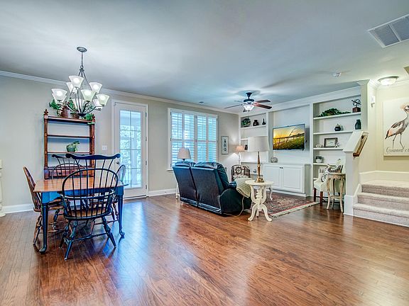 Spacious townhome in highly sought after Mt Pleasant neighborhood, Dunes West. Hardwoods on the first floor with open floor plan featuring a chefs kitchen with stainless steel appliances, pantry, gas range and large island. Half bath off the kitchen. Large screened in porch looks out to wooded landscape behind your partially fenced yard. Living room offers built in, custom bookshelves and room for your television. Opens to a dining room space. Second story features large master bedroom with office space and gorgeous master bath with dual vanities, garden tub and oversized shower. Flex space upstairs can be an office, playroom, or second family room. Two nice size bedrooms share a full bath. Separate laundry room with washer and dryer that convey finish out the upstairs. Plantation shutters throughout. Exterior was just painted this year. Owner installed landscape lighting and has a package for custom Christmas lights (see picture in photos) that will convey as well. Yard also has irrigation system. Security system inside. 2 car attached garage with monkey bar storage that will also convey to new owner. Opportunity to join both the Club at Dunes West for swim and tennis and the Golf Club at Dunes West. Walking trails throughout Dunes West. Shopping, grocery store and restaurants are all close by.