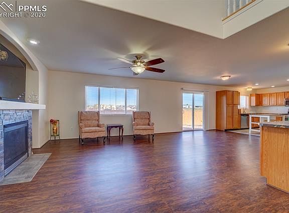 WELCOME HOME to beautifully maintained, move in ready 2 story home with finished basement and a 3 car garage in quiet cul de sac in Jessica Heights Subdivision! You are conveniently located to Peterson AFB, Schriever AFB, approximately 15 minutes from Fort Carson and Powers Corridor where there is plenty of shopping and dining! Main level is bright and open floor plan with LVP flooring the living room features gas fireplace and opens to dining and kitchen area with island, all stainless steel appliances and walks out to large brick patio overlooking fenced back yard and backs to open space. The upstairs is the master bedroom with vaulted ceiling, adjoined 5 pc bath and walk in closet, there are 3 additional bedrooms and full bath. The finished basement has large family room, another bedroom and full bath. Don't miss this gem it will not last long, call for your private showing today!