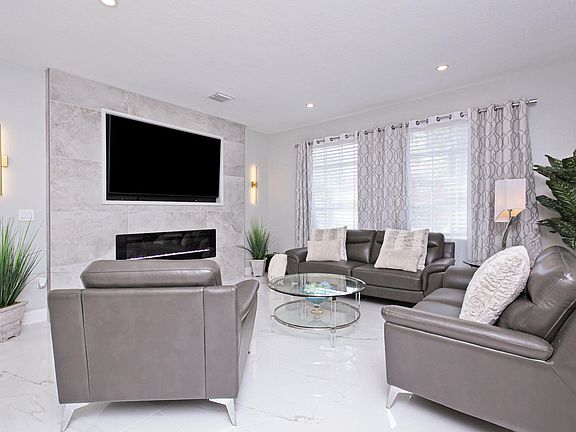 Priced to sell, all offers considered. Stunning and recently renovated this year, single family residence located in the highly desirable community of Olympia. This gorgeous home offers 4 bedrooms and 2 and a half bathrooms with a two car garage. Just some of the many beautiful updates you will enjoy are 32 X 32 porcelain tile, new light fixtures, electrical fireplace, lighted mirrors, waterproof vinyl flooring, granite countertops that you will find in both bathrooms and kitchen area. Kitchen offers a large sized island with space for seating, beautiful new cabinetry with gold metal hardware, a wine cooler fridge, 2023 Frigidaire appliances (stove, dishwasher, double door refrigerator). Property has includes a 2017 water heater, 2023 interior A/C unit & W/D. The community offers a stunning clubhouse amenities include pool, gym, basketball and tennis courts. This home is centrally located close to shops, dining, Wellington Green Mall, A rated schools and the Turnpike.