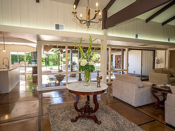 Completely renovated mid century modern home in Van Ness Estates. Three bedroom, three bath home on half an acre of peaceful privacy. Polished cement floors and floor to ceiling windows. Spacious outdoor living area includes a 24 ft pergola for covered entertainment. A detached workshop, fireplace, outdoor shower and auxiliary dwelling unit make the back of the house the perfect retreat. Oversized four car garage for all the toys. Inside, a two kitchen design makes hosting large events not just possible but simple and elegant. Quartzite counter tops with waterfall edge and custom backsplash in both kitchens with Sonoma glass tile inlay. Valencia marble throughout the master and hall bathrooms. The master bedroom features a cozy sitting area with fireplace. A separate make up vanity is situated in the spacious walk in closet next to a window for natural light. Many more custom designs make this house one of a kind. Complete home inspection was performed April 4th. The roof has been inspected and will come with a two year certification. Also, a clear pest/termite inspection was completed on April 5th. Pictures only tell part of the story so please join us for an open house scheduled for April 24th, 1-4pm. This is a for sale by owner listing but happy to work with a buyer’s agent.