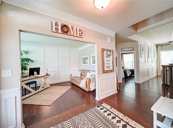 This home has so much character, you'll think you've stepped onto an HGTV set. This home features beautiful hardwood floors throughout the main level, upgraded wall detail in the front office and family room, stone fireplace in the family room, a spacious kitchen island, granite counter tops, 42" cabinets, & cozy breakfast area overlooking the stone patio and fire pit. The staircase, with new iron spindles, leads to the upper level that boasts an enormous bonus room, a conveniently located 2nd floor laundry room with custom built folding table, and three secondary bedrooms. The master bedroom will impress you with a stunning walk in closet/dressing room and en suite bathroom with a large garden tub, separate standing shower, upgraded shiplap accent wall, and a second walk-in closet. There is no shortage of space, storage, and custom accents in this home. Conveniently located near major highways, shopping, & entertainment, there really is no better place for you to call home!