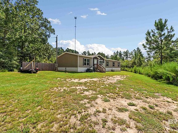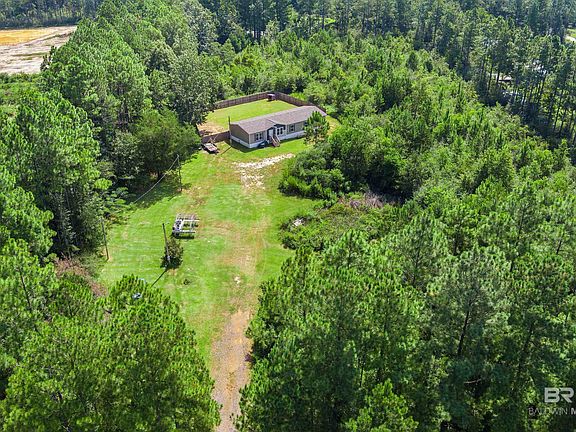 Come check out this property, nestled on 6.2 acres of serene and private land, this stunning 4-bedroom, 3-bathroom ranch-style home offers the perfect blend of modern living and natural beauty. Tucked away at the rear of the property, it provides breathtaking views of nature, ensuring peace and tranquility. The open floor plan features farmhouse finishes, abundant natural light, and a kitchen with all-new stainless-steel appliances, a large island, and ample cabinet space—ideal for entertaining. The primary bedroom boasts a walk-in closet and ensuite with a double vanity and soaking tub. Three additional bedrooms share two bathrooms, making it ideal for a large or growing family. The property also includes a privacy-fenced backyard, two additional prepped locations with septic, electrical, and water tie-ins, offering endless possibilities for expansion. Easy access to Mobile, Pensacola, and Gulf Shores makes this secluded oasis convenient yet remote—a nature lover's dream. Motivated sellers. Buyer to verify all information during due diligence. Buyer entertaining all reasonable offers.