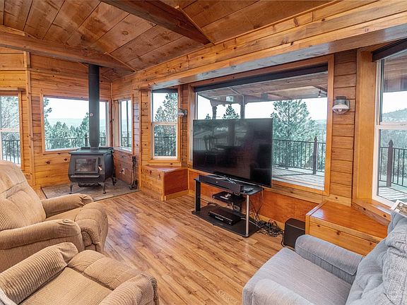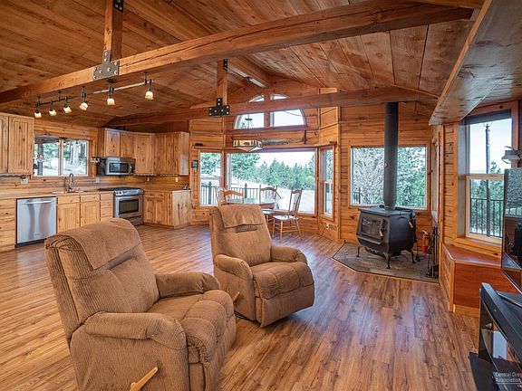 Glorious Views of the Strawberry and Blue mountains nestled in Murderers Creek which is in the heart of Malheur National Forest in Central Oregon and only 6 miles West of John Day. Live the Life on almost 80 acres filled with Ponderosa Pines, Fir and Junipers. This Wonderful Retreat is built with Pine, Wood Beamed Ceilings and Walls of Glass taking advantage of the Forever Views. Enjoy Morning Coffee or Evening BBQ's on your 650 SF partially Wrap-around Porch only enhance the true Serenity of this Property. 30'X36' RV Garage has 12' door, 100 Amp Service and Wood Stove. A nice Set-up for the included 5th Wheel with separate Septic. Water Well grants 23 GPM. Completely Fenced and Cross-fenced in various portions of the property allows for grazing of cattle, horses. To top it off, you have a 24'36' Barn with lean to and 3 Stables with Tack Room. Must See to Appreciate!