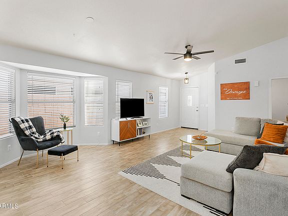 Welcome to your new home in North Canyon Ranch! This charming 3 bed, 2 bath home features lovely updates throughout, including a new 2023 HVAC system, wood plank ceramic tile floors, & newer carpet. The kitchen boasts white cabinets, granite counters, & 2017 stainless Whirlpool appliances. Enjoy the spacious feel with vaulted ceilings in the family room and owner's bedroom. The owner's bath offers a separate garden tub and shower. Modern fixtures and lighting enhance every room. Outside, a full length covered patio with extended pavers & grassy backyard offers marvelous views & a wonderful space to entertain & enjoy. Immediate access to hiking & biking trails, restaurants, shopping, golf, waterparks, schools & both I-17 & Loop 101 makes this home a perfect blend of comfort & convenience.