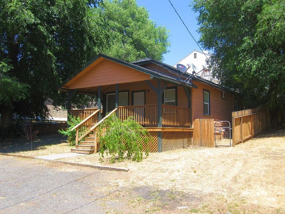 This home has been fully renovated, from roof to flooring. Gifted contractor did a fantastic job on this cozy 3 bedroom, 1 bath home in town, just around corner from river. Open living, kitchen area w/counter bar. Refrigerator and stack washer/dryer stay. Covered front porch, relax and catch the evening breeze. Concrete back patio, tiered landscaping. Fully fenced and gated. Storage shed & more.