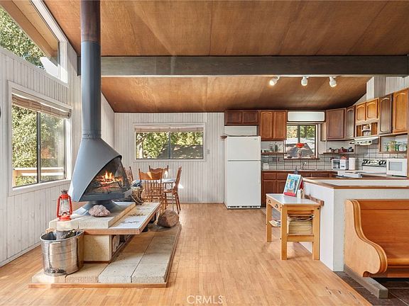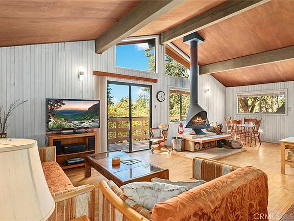 Nestled in the serene landscape of Idyllwild-Pine Cove, this charming cabin invites comfort and radiates tranquility with its open concept living, adorned by vaulted ceilings and floor-to-ceiling windows that bathe the interior in natural light. Imagine cozying up by the wood-burning fireplace on a chilly evening or enjoying a morning cup of coffee surrounded by awe-inspiring woodland views.