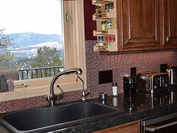 Unbelievable quiet; panoramic views over Kenosha and Tarryall Mountain ranges, Pine Valley and the road to Deckers. You can see Pikes Peak from your king size Master Bedroom Suite and stunning sunsets over Mount Evans from double height, 450 foot library/office/study. Passive solar heating in winter from 260 degree southern exposures, tons of light. Huge kitchen with dining room and in kitchen eating area; Upgraded Master Bath Suite with double shower with 3 rain shower heads and 2 shower wands, double sinks and large Japanese wooden Ofuro soaking tub with views of mountains and valley, Restoration Hardware cabinetry, heated floors and walls, heated towel racks and walk in closet with Elfa organizing system. New boiler heating system with individually adjustable radiators in every room give quiet, constant warmth with no blowing air; completely remodeled kitchen with all new Electrolux and Subzero appliances including wine cooler for 70+ bottles of wine and additional refrigerator drawers, warming oven, large microwave and double ovens, granite countertops. Passive solar heating in winter from 260 degree southern exposure. Fantastic neighbors on all sides, too far to see, but there when you need them, 2 minute walk through the woods. 90 minutes from front door to Empire Burger on Main Street Breckenridge; 75 minutes to DIA with no stop lights. Second king size master bedroom suite added off of garage in 2013 along with 450 square foot double ceiling height study with floor to ceiling built in book case and balcony with stunning views of Mount Evans. New hardwood floors throughout - basement, dining room, living room, master bedroom and study. Slate tile in entryway and kitchen.