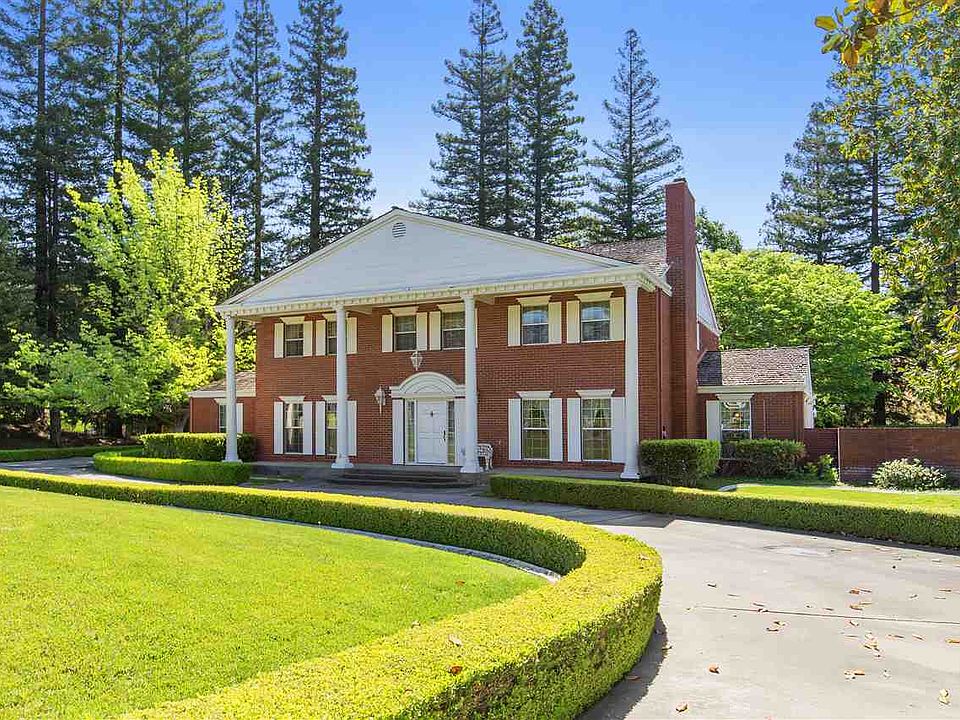 Stately Roundhill Country Club home with mature trees, grand driveway, regal landscaping and a gleaming pool. First time on the market, this colonial style home abounds with original charm and endless possibility. Soaring ceilings and a sweeping staircase create a grand entrance. A formal living room with large windows and a wood-burning fireplace leads into a dining room with built- in buffet and original wainscoting. The kitchen, with additional casual dining area, features hardwood floors and an adjacent family room with a bar and a brick hearth fireplace. A spacious master suite with sitting area, laundry room, and bonus room complete the main floor. Upstairs boasts five large bedrooms and two full bathrooms. The oversized two car garage, with golf cart parking, and additional guest bedroom with separate entrance and full bath are discreetly tucked on the side. Stunning backyard with large lawn area and privacy creating trees bookend this elegant property.