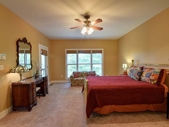 Solar Home with executive features sitting on 3 acre private hilltop refuge. This custom home is one of a kind. Has 6.36 KW grid-tied solar PV system, gourmet kitchen, masonry fireplace, wood flooring throughout, full basement with in-law or teenager suite including a full kitchen, lots of climate controlled storage, workshop, raised bed vegetable gardens, two pond-less waterfalls, drip irrigation, 3 acres fenced to keep deer out, gated driveway and 3 car extended garage to fit bass boat. The are two additional flex rooms that could be used as bedrooms, office, bonus or gameroom. Call today for private tour!
