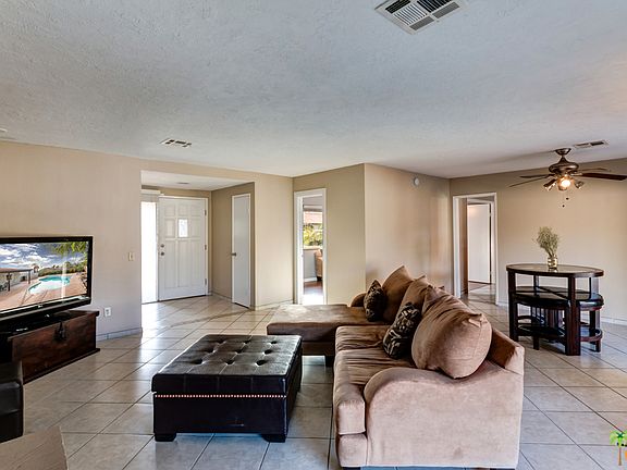 New Price 5/8/17! New roof by Rancho Mirage Roofing - February 2017. New pool pump - April 2017. Grab your mimosa and glide through double-pane sliding doors from the Dining and Living areas to a covered north-facing Patio overlooking a sweeping Entertaining Area. Dip your toes in in the sparkling white plaster heated Pool & Spa. Private yard with grassy lawn and mature landscaping. The house sits on a corner with gated access on the east side - perfect for RV parking, garden, or play area for people & pets. Flexible fourth Bedroom off Kitchen in this 3/2 one-level (no step down rooms) with on-trend tile and slab surfaces. The Master Bedroom overlooks the Patio and Pool, too. Newer privacy fencing. Storage shed. Hang your leisure wear behind the frosted-glass closet doors in the ensuite Master Bathroom. There are newer double-pane windows and sliders; a fireplace; a Laundry Station in the garage. Easy backyard access from the finished Garage, too. Water-wise landscaping streetside.