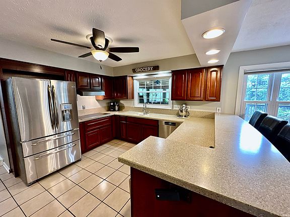 Please remember the following description: This beautiful traditional 2-story home with a walk-out basement is situated on a large 1-acre lot. The spacious 4-bedroom home provides ample space for all your needs. Upon entering through the stunning double front doors, you will step into the updated kitchen which seamlessly flows into the great room, featuring a wood-burning fireplace. Enjoy the views from the new Trex deck or the spacious all seasons porch, perfect for entertaining. The main level includes a formal dining room, office space/living room, and a half bath. Upstairs, the primary bedroom is fit for royalty, with an ensuite and two massive walk-in closets. The finished walkout basement is a perfect hang-out space for watching movies or hosting game nights, complete with a wet bar and full bath. Conveniently located 20 minutes from Indiana University and 30 minutes to Indy!