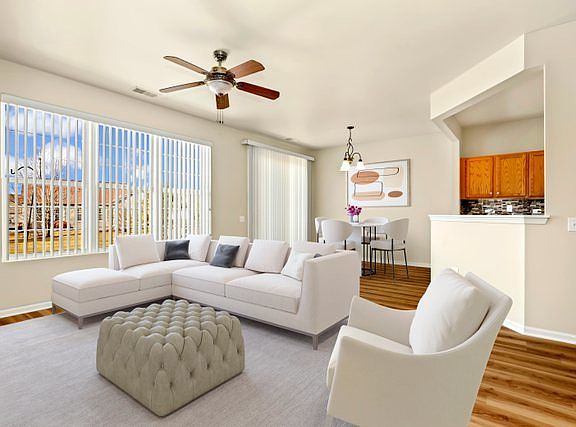 Experience the carefree lifestyle of 55+ living in the highly sought-after community of Edgewater Del Webb. This well-maintained residence boasts a wealth of recent updates and a host of desirable features. Enjoy the peace of mind that comes with a 24/7 gated entrance with guard on duty. The luxurious Clubhouse offers a haven of relaxation and recreation, featuring an indoor/outdoor pool, a hot tub, and fitness center. Active residents will appreciate the access to bocce ball courts, pickleball courts, tennis courts, and walking paths. This home showcases a range of recent updates, including a new roof (2024), modern laminate plank flooring and freshly painted walls (2025), a newer refrigerator (2023), a new water heater (2019), and new windows, furnace, and air conditioning (2017). Bright and airy living spaces with abundant natural light create a welcoming atmosphere. The spacious primary suite offers a private retreat with a walk-in closet and a luxurious en suite bathroom featuring a double vanity and a step-in shower. A generously sized second bedroom provides ample space for any size bed. The well-appointed kitchen features ample cabinet and counter space, and seamlessly flows into the dining room and family room, creating an ideal layout for entertaining. Enjoy the outdoors on the inviting patio, perfect for relaxation and entertaining guests. This home offers the perfect blend of comfort, convenience, and community. Schedule your private showing today!