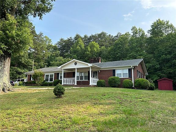 Updated brick ranch sitting on close to an acre lot, 3BR/2BA, full unfinished basement for further expansion, new paint, flooring, kitchen has built in range top and oven, new refrigerator and microwave, lots of cabinet space, breakfast nook area and separate dining room, large living room, den has fireplace, laundry area is in the basement, large sunroom off of kitchen, 2 car enclosed carport, rocking chair covered front porch, patio in back for entertaining, nice size storage building