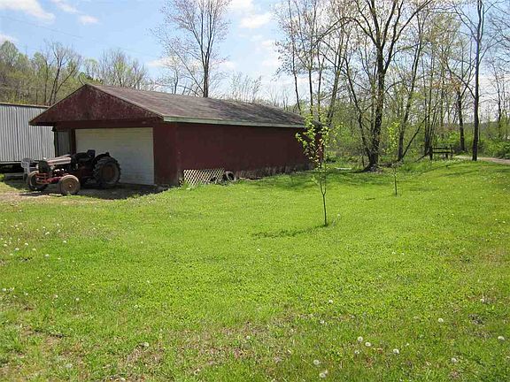 Looking for a weekend getaway location or a secluded place to build? This 3.82 acres has a spring fed, stocked pond with a small dock. There is a 24 x 40 garage with gravel floor. A 10 x 12 shed is a shower house with electricity, shower, toilet, lavatory, and pressure tank. There are 4 camper hook-ups located on property. Property has well, septic, electricity and woods. This is a must see!!