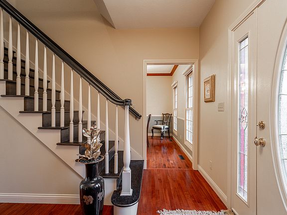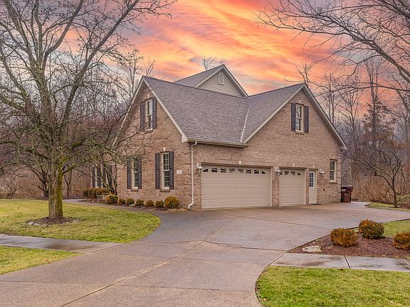 Fantastic home in a superior location! If you'd like close access to stores and restaurants, with the added bonus of a quiet neighborhood, then this is the house for you! This 4 bedroom, 2 & 1/2 bath, all brick home enjoys the privacy offered by surrounding woods, at the end of a cul-de-sac where nature can be enjoyed 365 days a year from your kitchen & office windows. Solid cherry hardwood floors lend an elegant quality throughout the home. The brick fireplace beckons you to enjoy the cozy warmth of the den. This home offers a 3 car garage, a full basement that could be finished for additional living space, and the primary suite boasts 44 linear feet of walk in closet space!!!