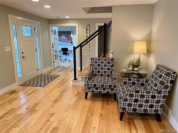 Ridgeview Park. Situated a couple of blocks from "Jack Ass Hill Park", which if you're local you know is Littleton's very best view of the entire front range & the scene of many proposals at sunset. People move here for the parks, trails, easy access to Historic Downtown Littleton, & of course our award winning school system. This home is a one of a kind due to the loving care & thoughtful high-end remodel the long time owners have done. Plus it sits right across from Ridgeview Park! This home boasts an opened up floorplan, hickory wood floors throughout, fresh everything, 5 bedrooms, or 4 upstairs + a main floor office, and a true Chef's kitchen. A gas range, convection oven, convection microwave, farm sink, quartz counters, & plenty of built in storage in the kitchen and dining room. The cozy family room features a gas fireplace with an insert to keep you warm on the the most snowy of days. The basement is partially finished with brand new carpet, fresh paint, and is ready for the use of your choice. Storage is always good and there is a huge storage room to help you stay organized. It has a fun back yard & great outdoor living spaces in both the front and the back. Owners had the back patio extended and redone with gorgeous stone, you will love hanging out in this very private yard. ***Sellers are installing a new Class 4 Impact Architectural Premium Grade Shingle roof in May, along with new gutters and downspouts!***