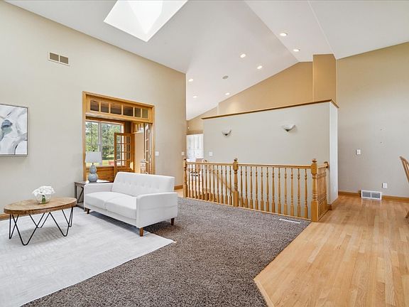 Welcome to your dream home on 1.3 acres of serene landscape! This spacious house has 3 bedrooms and 3 full baths. As you step inside, you're greeted by the great room, featuring a cozy fireplace perfect for chilly evenings. The kitchen is a delight, offering ample storage with newly added cabinets, deep drawers, and three appliance garages. A beverage refrigerator keeps refreshments cool and convenient. Indulge in year-round relaxation in the four seasons porch, complete with a wood-burning stove for chilly nights. This versatile space connects seamlessly to both the primary bedroom and the great room. Speaking of the primary bedroom, luxury awaits with a huge walk-in closet and an en-suite bath featuring dual sinks, granite counters, and a separate toilet and shower room with a zero-entry shower for ease of access. For those who work from home or desire a quiet study space, an office area with French doors off the great room provides privacy. Entertainment is a breeze with the lower level rec room, complete with its own fireplace and a fantastic bar area, equipped with a range, microwave and refrigerator. A non-conforming bedroom adds flexibility, and the pool table is ready for countless fun-filled gatherings. And there is loads of storage as well. Outside, the entertainment options continue with a patio boasting a wrap-around kitchen area, perfect for hosting cookouts. There's even space for your grill! Gather around the gas firepit, complete with seating for swings. and space for a movie screen. And, for all of your toys, there is an oversized three stall garage with double doors leading to the backyard. With its blend of comfort, luxury, and entertainment amenities, this home offers the perfect retreat for enjoying both indoor and outdoor living to the fullest.