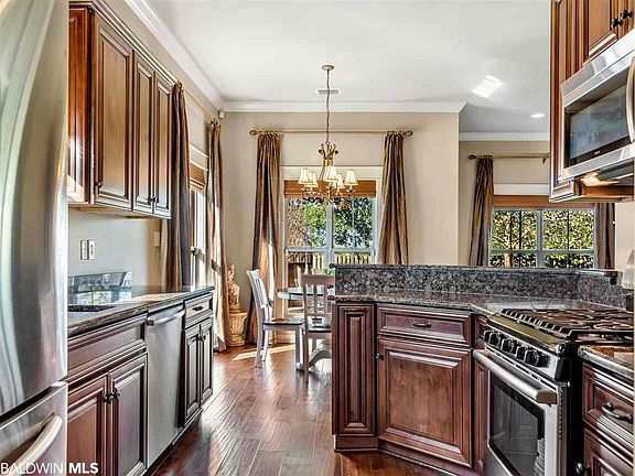 Custom construction centrally located in a wonderful neighborhood. This 4 bed 3.5 bath house has a great layout and custom look with quality construction. Downstairs has hardwood floors, nice molding, newly painted walls and many upgrades such as stainless appliances, granite countertops, custom cabinetry and window blinds on the double pane windows. The master bedroom has an en suite bath with large tub and custom tiled shower located on the first floor. This plan has a separate dining area located just off the kitchen, a large living room area with a fireplace and a breakfast area with bar leading from the kitchen/living room. Upstairs are the additional bedrooms and baths. If you're looking for privacy this house is perfect with two of the bedrooms having a private bath. Outside is a well landscaped front yard and a fenced in back yard with a covered patio and outdoor wood burning fireplace. Located just a few miles south of I-10 it's close to everything in Daphne, Fairhope and also the interstate for an easy commute to Mobile or Pensacola. This sought after neighborhood has sidewalks for walking and a Community Pool and Exercise facility. More pictures coming soon! At this time we are allowing tours of this property. Also we will be happy to provide you with a VIDEO TOUR. PLEASE LIMIT YOUR IN PERSON TOURS TO ONLY THE BUYERS AND/OR THEIR AGENT. Thank you.