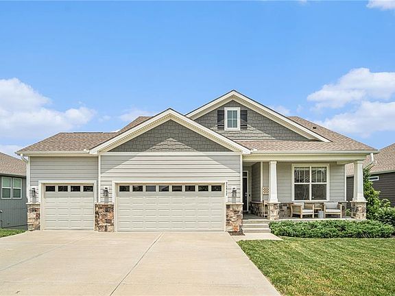 Located on a quiet cul-de-sac in the desirable Huntford of Olathe neighborhood, this beautifully maintained 4-bedroom, 3-bath home offers comfort, space, and privacy - all with a stunning pond view and no rear neighbor! A charming covered front patio is perfect for your morning coffee and chatting with your neighbors. Once you enter the home you’ll be pleasantly greeted by bright, inviting main level that features a main floor primary suite with connected washer/dryer, spacious dining room with butlers pantry, living room with high vaulted ceilings, and kitchen with granite countertops, large walk-in pantry, coffee nook, and all appliances stay. Downstairs, the finished walkout basement provides even more living space; ideal for a media room or home office - plus a massive storage area for all your extras. Nearby you’ll find quick access to the 258 acre Lake Olathe Park which offers a swim beach, marina, spray ground, playgrounds, disc golf course and much more and multiple community trails. Seller is a licensed realtor in Kansas and Missouri