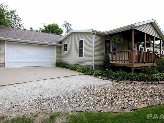 Stunning remodeled 3 BR ranch on 7 acres in Manito! Open living room & kitchen with custom cabinets, new counters & stainless steel appliances. Gorgeous master suite features walk-in closet with custom organizers & private master bath- beautifully updated. Tons of updates including flooring throughout, custom granite vanity in bathroom, new windows, siding, roof, furnace & central air, water heater, new plumbing & electrical. 2-stall attached garage addition plus a detached garage with tons of storage space. Beautiful front porch. Fenced back yard with huge deck- a great spot for entertaining.