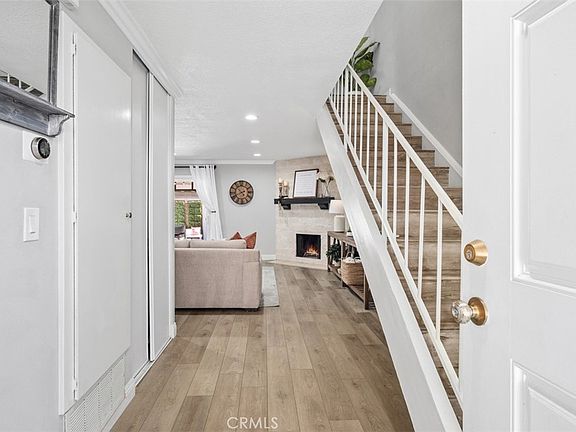 Beautifully Remodeled Townhome in South Lake Forest's Lakeside Park. This elegantly updated three-bedroom, 1.5-bath townhome is nestled in a lush, park-like setting with mature trees and greenery; this serene home offers the perfect blend of comfort and convenience in South Orange County, an ideal location for those seeking tranquility while remaining close to Irvine, Newport Beach, and major commuting routes. The home features a welcoming entry with designer tile flooring, an open floor plan with a spacious great room, Central AC, a newer water heater, completely re-piped with PEX piping and a remodeled kitchen with stainless steel appliances and quartz countertops. Luxury vinyl plank flooring and recessed LED lighting add modern touches throughout. The great room is centered around a charming wood-burning fireplace with stone that extends continuously from the base to the ceiling, creating a dramatic and cohesive architectural feature in the room—an inviting focal point. The private backyard patio is perfect for outdoor dining and entertaining, with easy access to the private laundry room, a washer and dryer, and a nearby carport. Upstairs, the primary suite boasts a balcony with greenbelt and tree views, a walk-in closet, and a dual-sink vanity, while two additional bedrooms and a full bathroom complete the upper level. Residents enjoy access to the Sun & Sail Club's extensive amenities - just a 3-minute walk away, including a pool, spa, gym, tennis and pickleball courts, basketball, playgrounds, and seasonal events. The community is conveniently close to shopping, dining, schools, and outdoor recreation, including hiking trails and the Tucker Wildlife Sanctuary. With its contemporary style and superb location, this turnkey home offers the best of South Orange County living. Close to schools, shopping, dining, medical and hospitals, and easy access to Interstate 5 freeway. Hurry, this one won't last!