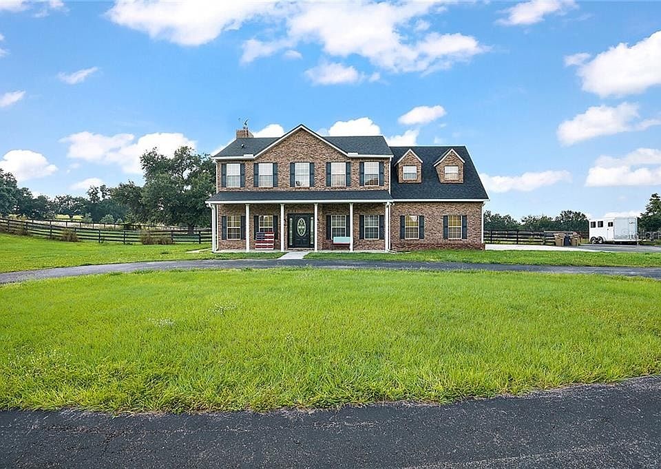 Enjoy spectacular sunset views from your own piece of country paradise. This 4 bedroom 2.5 bath custom brick home sits perfectly at the end of a long driveway on almost 8 acres of land. New roof was installed approx 2.5 years ago and the 2 air conditioning units were replaced last year. Home boasts wood plank flooring and tile downstairs. Kitchen offers ample cabinets, an island, and granite countertops, it overlooks the eat in area and family room with a brick wood burning fireplace. Upstairs you will find the bedrooms including the master which has a private balcony and panoramic views. Beautiful custom 3 stall barn was built approx. 2 years ago, complete with water/electricity and remote fans. The property is completely fenced and is perfect for anyone with horses or livestock. The home is in a great location near downtown Howey in the Hills which has waterfront dining, markets and boat ramp. It is also close to Howey's renown Mission Inn Golf + Spa Resort. Come enjoy the country life and still be close to all conveniences. Call for your appointment today!!