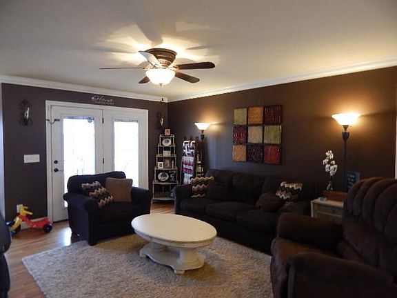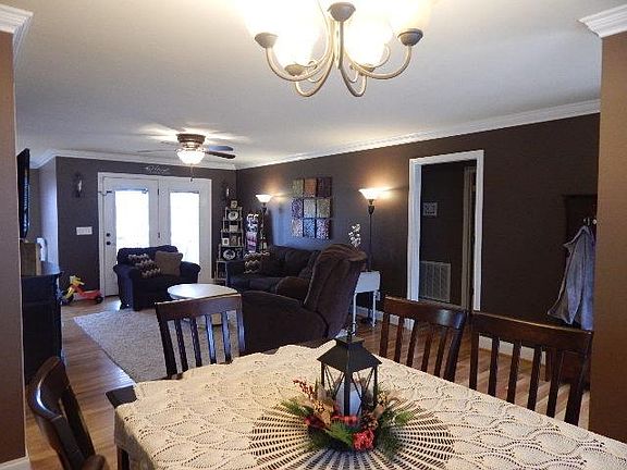 A contemporary home with open floor plan and nice molding and hardwoods throughout. Formal dining and separate breakfast area. This home sits in a rural area but not far from the city limits. All stainless steel appliances remain. This is a great show and the privacy in the back with a large back yard is a plus. Covered front and back porch/deck.