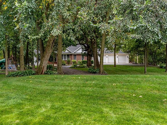 Welcome to your dream retreat nestled in the serene woods! This spacious ranch-style home, set on a sprawling 1.9-acre parcel, offers the perfect blend of natural beauty and luxurious living. As you approach the property, you'll be greeted by a picturesque tree-lined driveway that leads you to this oasis in the country. The exterior features classic rustic charm, with a stone façade and a lovely front porch where you can relax and enjoy the tranquility of your surroundings. Upon entering, you'll sense the warmth and incredible functionality of this sprawling, open-concept living space featuring 9' ceilings. The heart of the home is the designer kitchen, complete with Cambria countertops, stainless steel appliances, and a large center island with a deep farm sink and touch faucet for your convenience. You will not believe the pantry, it is just enormous with so much to offer! The adjacent dining area boasts panoramic views of the wooded landscape, creating a captivating backdrop for family gatherings. The home features 5 spacious bedrooms, including a luxurious master suite with a spa-like ensuite bathroom and a walk-in closet. In the lower level, there is a secondary master suite with WIC and roughed-in bath. Each room is designed with large windows that invite the beauty of the outdoors inside. The main floor office could serve as a 6th bedroom. Additionally, there is a cozy living room with a fireplace, perfect for quiet evenings, and even more gathering space in the lower level with access to the wonderful screened-in porch perfect for soaking in that hot tub! Step outside onto the deck, with access from the dining room and MB to entertain or simply unwind while listening to the sounds of nature. Looking for an extra place for cars and your things? Will 6 car spaces do? 3 up and 3 down, with easy access to both! The meticulously landscaped yard extends into the woods, providing endless opportunities for outdoor adventures, gardening, or creating your own private sanctuary including access to the Kishwaukee River & Conservation District. This property offers the best of both worlds – a tranquil woodland retreat just minutes away from city amenities, schools, and shopping. Don't miss the chance to make this exquisite ranch home in the woods your own private haven. Come and experience the peaceful elegance of this remarkable property today! Please see the amenities sheet for all the updates and incredible enhancements this home offers.