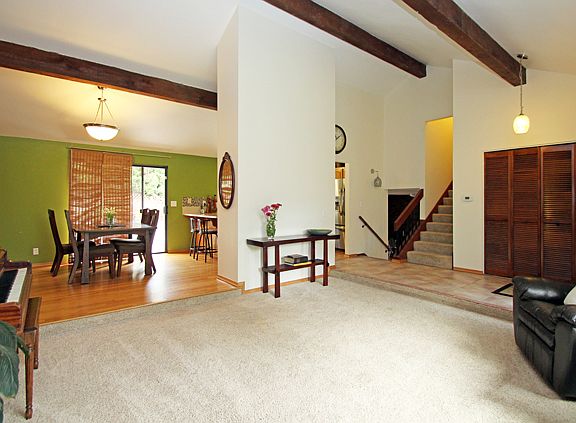 Nicely updated tri-level home in cul-de-sac. Features hardwood & new carpet throughout, vaulted ceilings, stainless appliances, updated baths, & kitchen with Corian counters, eating bar, built-in hutch & nook. Master suite with double door entry, 2 sinks, walk-in closet, shower & door to deck. Formal living room, family room & bonus room! Paved RV parking. Landscaped yard with large deck, built-in hot tub, & raised garden & flower beds!