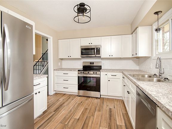 You will love this updated 4 bedroom, 2 full baths, split level home that is over 1,762 sq ft with 4 levels of living space. The sellers have done everything for you! The kitchen is gorgeous, new soft white close cabinets, tiled backsplash, new counter top and flooring. All new stainless steel appliances. Nice dining room with view of kitchen, so guest can mingle. The 2nd floor has 3 generous sized bedrooms and a beautiful updated full bath. Wait there is more to this house, lower level has a family room with fireplace and a 4th bedroom, or use for an office and another updated full bath, the basement area has a large room, could be a media room or make it something of your own, plus a utility room, another room for storage or work out room. Also has bilco doors to back yard. The sellers painted entire home, all new flooring, brand new lighting, and doors. Furnace, HWT and Central air are new, plus all the windows and patio sliders, new siding. Nice backyard with patio and a pergola. Come take a look you won't be disappointed!