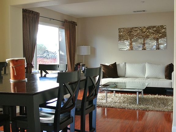 4 bedroom (all bedrooms are upstairs) 2 1/2 bath, 2 car garage, wood burning fireplace, single family home. Landscaper included. Open floor plan, upstairs laundry, His/hers walk-in closets. Big backyard with fruit trees and palm trees. Gated community w/pool, park and hiking trails. Roving security. Central to Hwy 54/94, easy commute to downtown and Navy bases. All bedrooms are large with large closets and plenty of storage throughout the house. Eat in kitchen and formal dining room with 18' ceilings and formal living room.