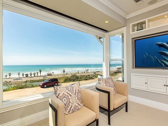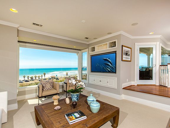 Ultra chic Cardiff craftsman. This 4 bedroom dream home has it all including stunning ocean views from bottom to top. Famed interior designer Susan Spath recently remodeled the entire home incorporating rare imported marble, French oak floors, custom light fixtures, and state of the art appliances. An oversized private master retreat offers ample space and a custom designed his and hers walk in closet by California closet. The designer baby nursery was featured in Wall Street Journal and a convenient guest suite equipped with full kitchen and bathroom can be completely locked off from the house to allow guests total privacy and separate access. A full private bar room exudes fun and an entertainment deck featuring an 8 seat hot tub w custom privacy shades and an outdoor TV offers an ideal spot to unwind. Seaside market, Glen park, the San Elijo lagoon trail system, and Cardiff state beach are all easily accessed on foot in under 10 minutes.