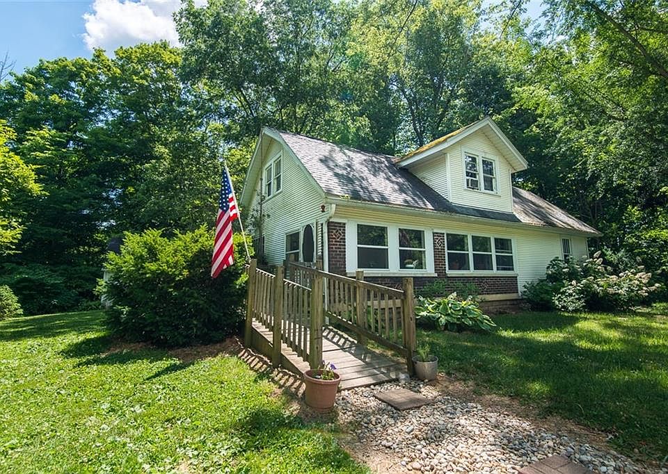 This CUTE Country FARMHOUSE charmer sits on 30 acres. The home was built in 1920 and has many of the unchanged details from when it was built. The VERY GOOD SIZE family room with its exposed wood beams and fireplace would be the perfect cozy place to hang out or you could enjoy the view of outside from the enclosed front porch or back deck. The family room also has a huge window overlooking the backyard, that would make a wonderful place for a big dining table since it is adjacent to the country kitchen. This home has 4 bedrooms 3 of which are upstairs and 1 on the main level. Across the road is part of the 30 acres that go with this home along with a HUGE Pole Barn. A few updates and it will be PEACEFUL COUNTRY LIVING at its BEST!!