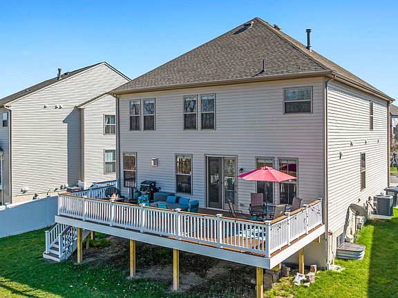 Welcome to your dream home in the sought-after Stone Ridge community of Chantilly, Virginia! Built in 2016, this stunning 5-bedroom, 4-bathroom home offers modern elegance and luxurious living in a serene neighborhood. Plus, it can become a 6-bedroom, 5-bathroom with a kitchenette if the buyer finishes the basement! Step into the foyer and be greeted by gleaming hardwood floors, high ceilings, and an abundance of natural light. The main level boasts a spacious living room, dining room, and a family room with a cozy fireplace, perfect for entertaining. A main level ensuite bedroom provides the perfect space for private office space or main level guest/living space. The gourmet kitchen features granite countertops, stainless steel appliances, a large island, and plenty of cabinet space. Enjoy your morning coffee in the breakfast area with views of the spacious Trex deck and tree lined yard. Upstairs, the luxurious primary suite features a tray ceiling, generous dual closets, and a spa-like bathroom with dual sinks, soaking tub, and separate shower. The upper level also includes three additional bedrooms, two more full bathrooms, and a laundry room for added convenience. The unfinished basement is the perfect blank canvas, ready to create your dream basement. Add a potential sixth bedroom, fifth full bathroom, and kitchenette with rough in plumbing and framing ready to go. This beautiful home is located in the desirable Stone Ridge community, which offers multiple pools, a gym, clubhouse, tennis courts, and walking trails. With easy access to major commuter routes, shopping, and dining, this is the perfect place to call home!