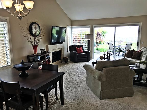 Welcome home to the highly sought-after community of Vista Mar. Featuring open unobstructed panoramic canyon and mountain views. This model perfect, rare single level home on a private lot, single loaded street, featuring 3 bedrooms, 2 bathrooms, make this home ideal. Upon entry, you'll notice the vaulted ceilings, 4' molding, framed windows, travertine flooring and plush carpet. Dining room opens to the family room with custom travertine fireplace and upgraded gas log, with sliding glass doors to your backyard. Kitchen is complete with large pantry, GE Profile stainless steel appliances, custom cabinets, under cabinet lighting, and granite counters. The private backyard makes this home perfect for relaxing or entertaining. Master suite is inviting with sliding glass door, and breathtaking views. Master bathroom doesn't disappoint with custom shower, dual shower heads, dual vanities, low profile toilet and Hansgrohe fixtures. Generously sized second, and third bedroom with mirrored closet doors. Secondary bathroom with beautiful granite vanity and tub with glass shower enclosure and low profile toilet. This home is impeccable with dry walled garage, recessed lighting, new garage door and epoxy coated floor, new PEX piping new AC unit, energy efficient lighting, throughout entire home. Yard has all new plumbing with sprinkler and drain system. Easy access to the freeway, 73 Toll Road, Blue Ribbon schools, shopping, the beach, trails and parks. This lovely home wo