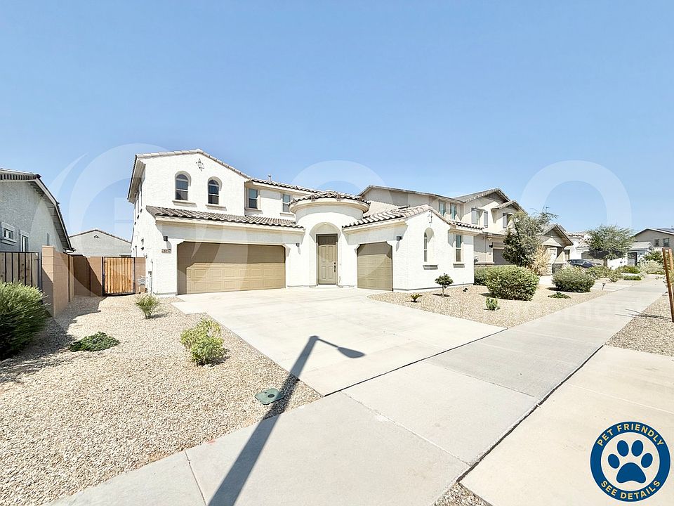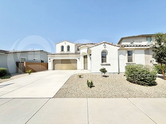 3,462 SQ FT! Stunning 5 bedroom, 3.5 bathroom two-story home in Surprise's desirable Rancho Mercado Parcel A12 neighborhood. The elegant kitchen features all appliances in their proper locations: Refrigerator, Oven, Microwave, Dishwasher, and Garbage Disposal, with a second Refrigerator conveniently located in the pantry, combining style and functionality for everyday living and entertaining. Spacious living areas with carpet and tile flooring in all the right places create an inviting atmosphere for both relaxing and hosting guests. A flexible bonus space upstairs, complete with a walk-in closet, provides the perfect option for a home office or den. The primary suite includes a generous walk-in closet and a well-appointed ensuite bath, while three additional bedrooms are nicely sized to accommodate family or guests. The laundry room comes equipped with a Washer and Dryer for convenience. Additional upgrades include an Aquasure water system, Aquasana water filtration, a tankless water heater, and dual AC units. Parking is provided by a 2-car garage and a 1-car garage, both with new epoxy flooring. Step outside to enjoy the private backyard with a covered patio, ideal for outdoor living. Located in Rancho Mercado Parcel A12, this home offers easy access to schools, parks, dining, and entertainment in the heart of Surprise.