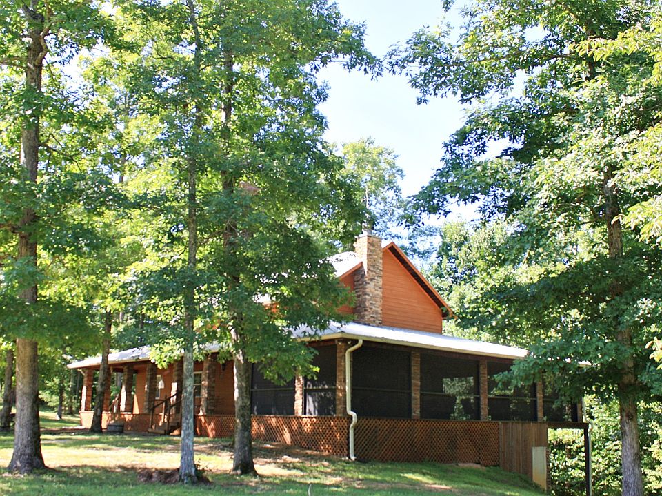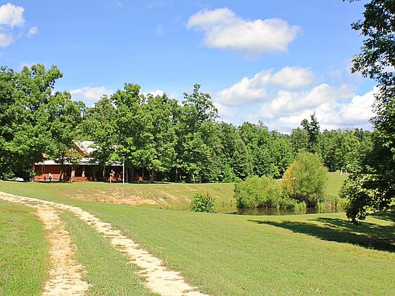 This is a custom built home, chances are likely you've never seen one quite like it. It is located at 2486 Armstrong Rd Linden Tn, just minutes from the Buffalo River. It is set back off the road for privacy and seclusion. The 31.07 Acres of land boasts creek frontage, a year round spring, well water and a pond. Seriously, this property has it all! The land is mostly wooded with about 5 acres of cleared land around the house and shop. The pond is right out in front of the house for a view I can't imagine anyone getting tired of. The home is 3 bedrooms 3 full custom bathrooms for a total of 3000 square feet of living space. The living room has tall vaulted ceilings with a stone propane fireplace that goes all the way up, huge chandelier that is on a pulley system so it can be cleaned or bulbs replaced easily. The kitchen has a huge 5.5x7.5 granite bar with built in propane stove top, granite counter tops and custom cabinets. Off the kitchen is an 8x7 pantry that could also be used as a laundry room (has hook ups). The dining room is 15x11 with views of the pond out front. The master bedroom is 18x16 with a stone, propane fireplace, huge 7x14 walk in closet and access to the screened in porch. This room also includes the 46" wall mounted TV and access to the master bathroom. The master bathroom is one to remember. It has custom Granite vanity tops, Jacuzzi tub and an open walk in tile shower with 3 shower heads. The upstairs has an open loft bedroom with its own full bathroom and tile shower. This loft area over looks the stone fireplace in the living room. The downstairs level of this home has its own theater room with 60" TV and couches included. There is a place for a custom bar as well with plumbing and power in place already. The laundry room is on this level with washer and dryer and the tankless propane water heater. The bedroom is 16x13 with its own bathroom and walk in closet. This room also has access to a 10x20 fully screened in porch with exit. The basement also has a 11.5x14 safe room/office with solid concrete walls and includes a 6' tall 46" wide 28" deep Fortress Security Safe-Regal safe. The home is equipped with surround sound throughout the home with speakers in most rooms with their own volume control. This home is on well water, septic tank and has a geothermal heat and air system. This home was built to be energy efficient. The exterior of the home has concrete board siding and metal roof. The porch goes around 3 sides of the home. The front side porch is 11x56 and is open. The end of the home and back side the porch is screen in with screen on the bottom side of the floor as well to keep out all bugs and insects!! The porch is furnished with table and chairs, sink and a mini fridge! Right behind the home is a 16x30 finished cabin with 1 full bathroom. The home can be heated and cooled with the Geothermal system that is installed. This system is very energy efficient and uses the heat and coolness from the earth to help keep the home at a temp above 60. A modern heat and air system is also in place for extreme weather temperatures. Behind the home is a 16x30 finished cabin with one full bathroom. The shop is on past the house and has concrete floors, power and water. The metal shop is 40x60 with 2 12' sliding doors, 1 20' double door and 1 walk in door. The creek is located on the back side of the property.