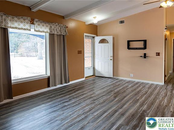 Nestled conveniently between the Pocono Mountains and Lehigh Valley, this charming Ranch is a MUST SEE. This home features three bedrooms with exceptional closet space, and a main bathroom that boasts a walk-in closet and a new remodeled shower. The fully finished basement provides great space for anything you envision and a laundry room with built-in storage and folding/hanging space for added convenience. The newly remodeled kitchen features quartz countertops and elegant built-in cabinets, providing a stunning finish and ample storage space. The two-car garage, carport, and TWO utility sheds are sure to please, with plenty of space for vehicles, hobbies and equipment. This home has a NEW ROOF, NEW HEAT PUMP, and has been very well maintained so you can have peace of mind and move in ready convenience. Do not miss your opportunity for a tour, schedule a showing today!