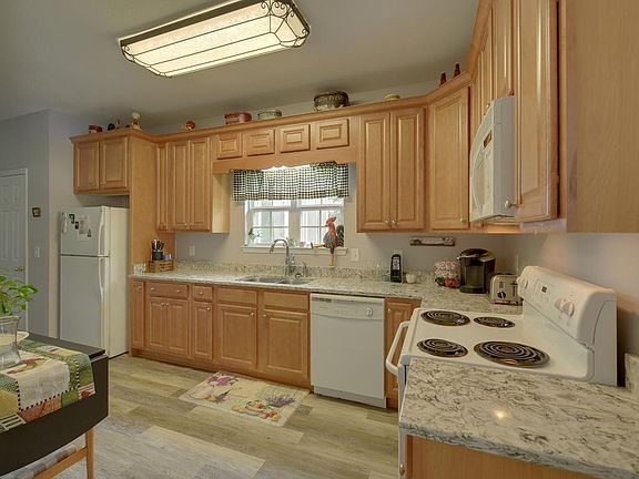 Great 1 level home in absolutley a great community. Plenty of room in this 2BR, 2BA ranch with a 2 car attached garage. Great Room with cathedral ceiling & fireplace, Master suite and large second bath room. New laminate floors, counter tops. Rocking chair front porch and screened backyard porch. Very large level lot, perfect for large garden or addition of pool/playground, etc. A must see at this affordable list price.
