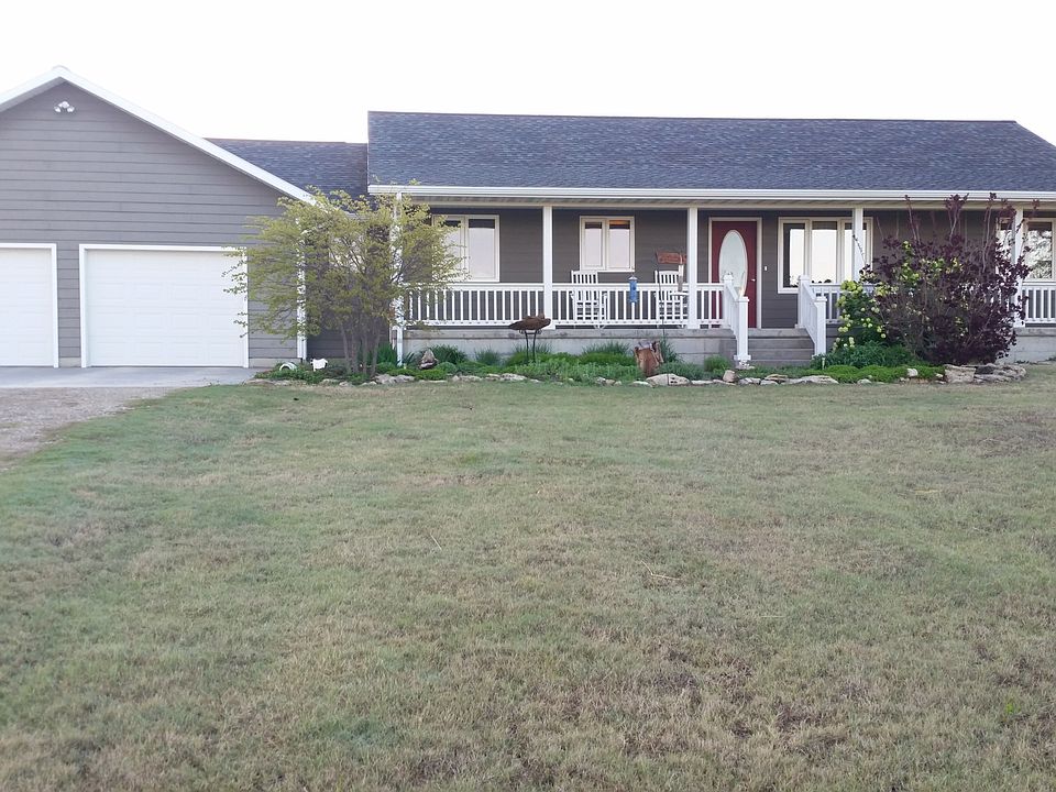Beautiful country living. This quiet place has much going for it. Set in a native grass meadow overlooking the head of the Cottonwood river. In the front enjoy the view from a full length porch, while the back still has a walk-out basement with meadow views. This efficient ranch style home was built in 2004 and has been well maintained. 4 bedrooms and 3 full baths. Vaulted ceiling living and dining. Hickory cabinetry and woodwork. Triple pane casement windows. Laminate floors in kitchen, utility and all baths. Spacious kitchen and utility. Main floor level deck off the back of the house. Total electric with heat pump, and almost new Harmen pellet stove is used as the principle heat. Marion Co Rural water with a usable well also. The barn is set with quality fencing and automatic waterer. This arrangement works good for livestock. This property also has a 40x50 ft metal building with concrete floors (built in 2016) would work great for that workshop or shorage. Approx 28 acres are able to be cut and baled as prairie hay feed. A small creek runs through the far side of the property, while the terrain just south of the house would accommodate a nice pond. Private, Barn and facilities that are ready for livestock, Marion Co taxes, Cement-board siding over 3/4? foam-board