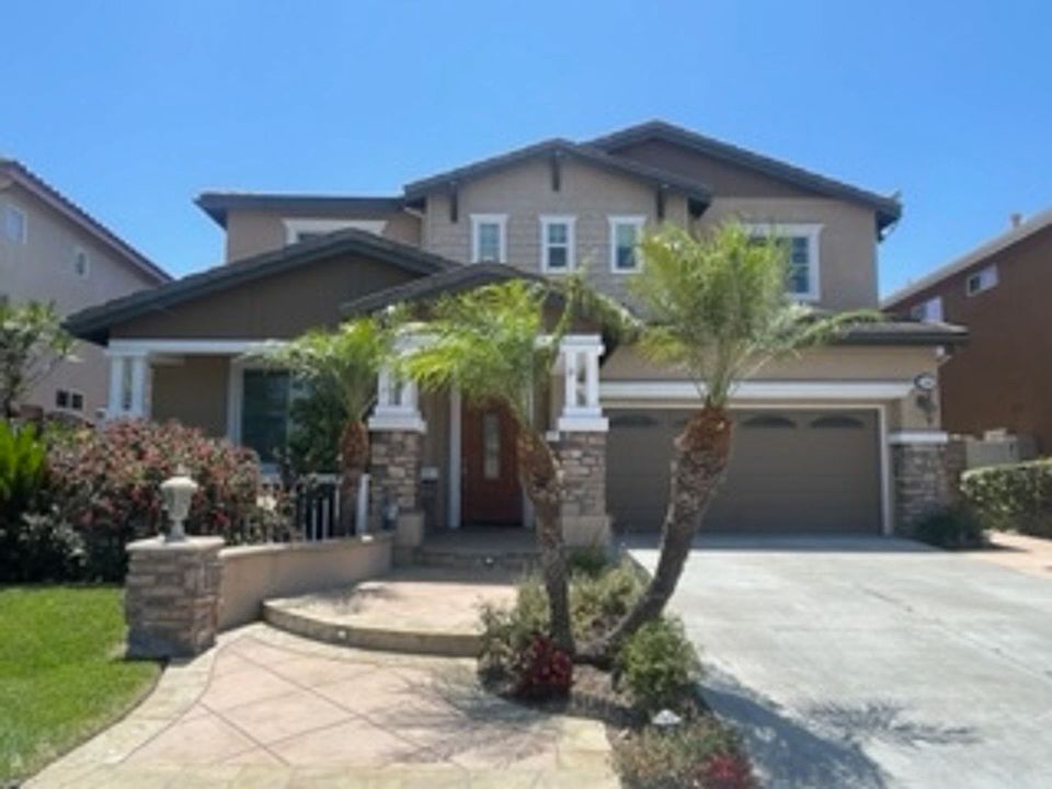 Beautiful home for rent in the highly sought after Serrano Heights neighborhood in Orange with an incredible unobstructed city view! This amazing home boasts approximately 3000 sq ft of living space with four bedrooms, four bathrooms, tile and new carpet flooring, fresh paint, wood shutter shades upstairs, ceiling fans and dual zoned AC. The main floor features an office/den, powder room, formal living/dining room and kitchen. The kitchen is equipped with built in appliances, granite countertops, pantry and center island with built in cooktop The kitchen opens up to a family room with a gas fireplace. The second floor features all four bedrooms. Three bedrooms, two shared bathrooms, a spacious laundry room and a master suite with a balcony overlooking the Canyon. The master bath includes a Jacuzzi tub and a separate walk-in shower, along with dual vanity and large walk-in closet with built in organizers. The backyard offers an amazing view, built in BBQ island and Jacuzzi. 3 car tandem garage features plenty of organizing storage shelves and cabinets. Solar Panel electricity credit, gardener included, automatic sprinklers, and set up for home security service