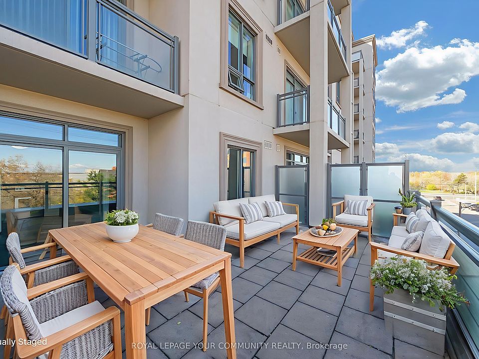 Welcome to this bright and comfortable 1-bedroom condo in Oakville's popular Bronte Creek neighbourhood. This thoughtfully designed suite features an open-concept layout with stainless steel appliances, in-suite laundry, and a comfortable living space that leads to a massive 300+ sq ft private balcony - perfect for relaxing, entertaining, or enjoying quiet mornings outdoors. The building offers great amenities, including a fitness centre, party room, rooftop terrace, and bike storage. Located close to shopping, restaurants, parks, trails, and major highways, this standout unit combines comfort, convenience, and exceptional outdoor space rarely found in condo living.