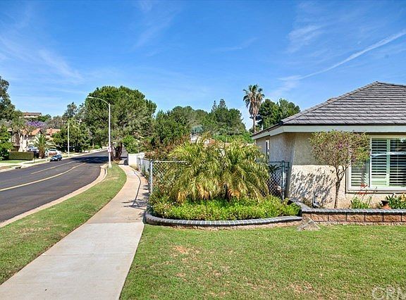 Lovely Single Story Home, Corner Bonus Lot, Great Street Appeal, Views of Cleveland National Forest & City Light! Open courtyard with fountain, beautifully landscaped; flowers, fruit trees & grassy areas, auto sprinkler & drip system, 2 patio with pergola patio covers. Lovely open courtyard with fountain leads to covered entry with classic door knocker in lieu of a door bell. Enter to nice size Living Room with lots of natural light, updated Kitchen (oak cabinets, stone counters, stainless steel appliances, island casual eating area), Family Room (set up as Formal Dining Area) with custom fireplace, access to 2 car garage with auto roll up door, slider to covered patio with views of pleasant backyard, Hallway leads to a full bathroom, 2 secondary Bedrooms plus Master Bedroom with walk in closet & Master Bath, slider from Master Bedroom to 2nd covered patio featuring view of the Cleveland National Forest. Duel pane window, plantation shutters, custom paint, ceiling fans through out, 18" ceramic tile flooring, carpet in bedrooms. Community common areas include parks & walkway to community pool. Walking distance to Adams Elementary, Border Park & public tennis court, many community parks near by, public walking trail to the Cleveland National Forest at Foothill Parkway which connects to Border, bicycle trail to the beach, short drive to Green River Golf Course, good access to 91 & 15 Freeway, Foothill Parkway gives access to North/South/East & West Shopping & En