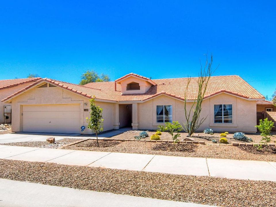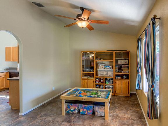 Beautiful Home with Many Custom Upgrades! Home features spacious Family Room, formal Dining Room/Game Room, soaring vaulted ceilings throughout, 18" ceramic tile, neutral carpet, hall Bathroom with Corian counters & dual sinks, new Lennox AC/Heating system with warranty, large built-in computer desk with matching cabinets, alarm system and much more. Open Kitchen offers custom Corian counters, rich wood cabinets, coordinated appliances, integrated sink and bar seating area. Spacious Master Suite has walk-in closet with built-in shelves, dual sink Corian vanity and relaxing Jacuzzi tub. Fully landscaped backyard retreat with covered patio, grass area, vegetable garden, wood vine trellises and custom tiled island with integrated BBQ grill.