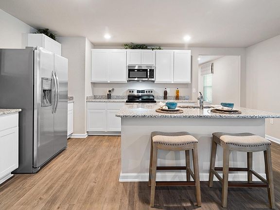 Welcome home to Ponder Place! This lot features the popular "Jemison" floorplan which hosts three bedrooms and two full baths. When you enter the Jemison from the front door you will be in the foyer with the garage entrance off to the side. Continuing down the foyer you will see a private hallway with a guest bedroom #2 and bath. Next, you enter the kitchen and dining area that opens to the family room. The kitchen has an island and a large walk-in pantry. The third bedroom is located off the kitchen which could be used for a flex room or office. The large bedroom has an ensuite with double vanities, a walk-in shower, a walk-in closet, and separate water closet. Brand new and energy efficient, this home comes with thermal doors, Energy Star rated double pane windows, 14SEER Carrier Heat Pump, and the home is connected with Smart Home technology. Hardie Board and Batten exterior with attached 2-car garage. Home is being built toward Gold FORTIFIED Home TM certification, which may save up to 50% on homeowner’s insurance. A 1-year builder's warranty and 10-year structural warranty are included. New playground currently being installed! *Pictures are of a similar home and not necessarily of subject property, including interior and exterior colors, options, and finishes. Under construction with estimated completion in November/December 2023. $3,000 towards closing cost if using DHI Mortgage. See New Home Specialist for additional details on DHI Mortgage.*
