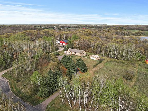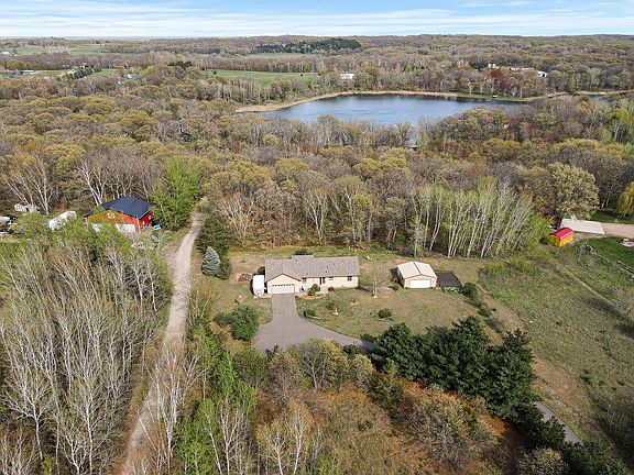 Lovely, spacious home on a secluded 6-acre lot on private lake with decent fishing. Appreciate the soaring vaulted ceilings, updated kitchen, and 3-season porch & patio with great nature views. Two bedrooms and a bath on each level, as well as the primary suite w/ its own private bath & dual closets. Large ticket items like roof (2022), appliances (2021), washer & dryer (2021) and hot water heater (2019) have been taken care of. Double-deep heated garage with epoxy floors, PLUS 2-car pole shed with electricity. Elk River schools! Come explore the delight of lake living right here at home!