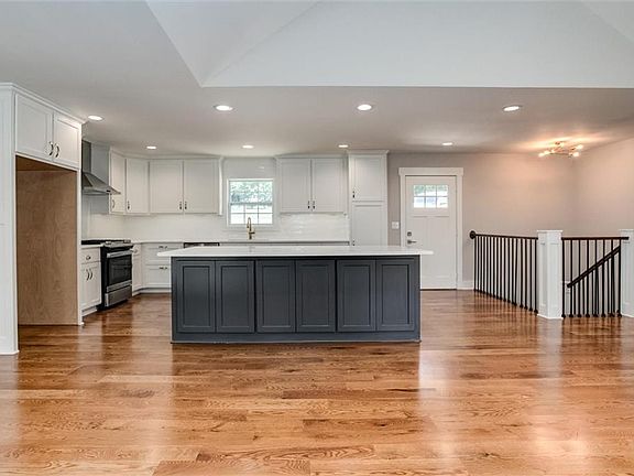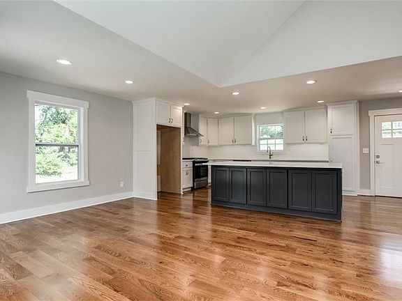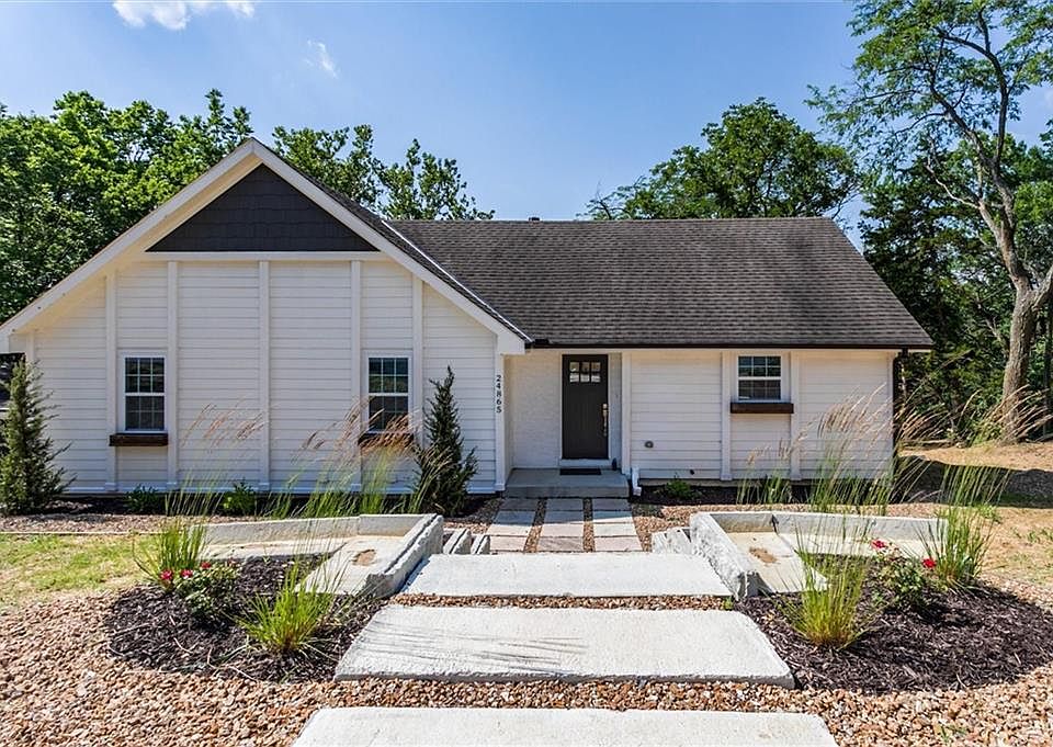 2.76 Acres and treetop views with this Reverse 1.5 Sty! Taken down to the studs, meticulously transformed into a stunning, modern place to call home! Featuring open kitchen with quartz counters, custom cabinets, gas stove and large island. Great room and dining room with gleaming hardwoods, vaulted ceilings, fireplace, beautiful tree filtered natural light. Master suite with walk in closet, laundry hookups, dual vanity, oversized walk in shower. Master opens to deck overlooking the serene outdoor space! Secondary bedrooms all with walk in closets. Huge lower level recreation room/family room with wood burning stove and built-ins. 3 car detached garage, outbuilding/shed good for chicken coop, goat house etc. Large deck from one end of the home to the other! 2 minutes to Lake Olathe and all the features of this city favorite. 13 month Ab May home warranty provided. Rare beautiful treed acres and creek bed! New exterior siding, HVAC, HWH, septic tank, windows and more! Home includes two lots. Front lot is 81,022 sqft, back lot is 39,204.