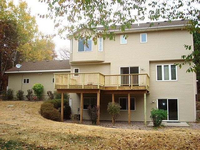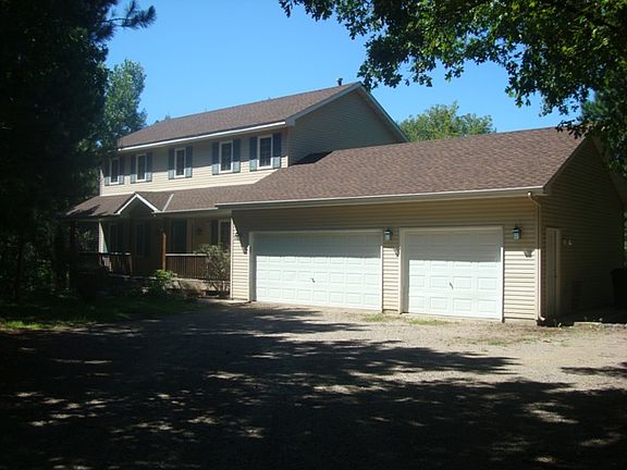 This spacious two story features a walk out basement, covered front porch, large deck and a three stall attached garage, and is located on a 2.5 acre private and wooded lot with a nice open back yard. The interior features include; kitchen with center island & oak cabinetry, main floor laundry, half bath off mud room entrance, living room with gas fireplace. Lower level features a family room, bedroom and full bath. Upper level includes; Full bath, three bedrooms including a master suite with a large walk in closet & full private bath with whirlpool tub. Neighborhood Description Quiet, wooded acreage lots, great neighbors, close to town