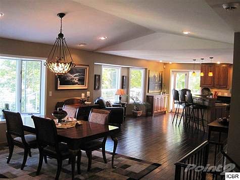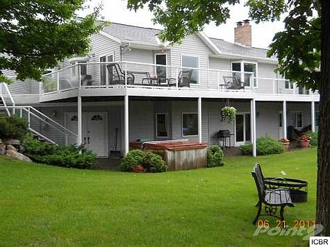 Located on 9+ acres on the Channel leading from Little Jay Gould to Lake Pokegama, this lovely 5 bedroom 5000+ sf home was designed with entertaining in mind! Beautiful gourmet kitchen on the first floor is enhanced with gorgeous custom cherry cabinetry, lg center island, stainless steel appliances, and magnificent colorful granite countertops. Lower level features massive family room, second kitchen, wet bar and attractive brick fireplace. A perfect location to gather friends and family for festive celebrations! Lovely French doors lead to an extensive master suite which has an elegant built in fireplace, amazing bath with Jacuzzi tub and glass block walls. Also located on first floor are the formal dining area with hard wood flooring, second brick fireplace and large his and her office areas with impressive granite desk tops. Three additional bedrooms are located in lower level. Tremendous views of lake, channel and opposing woods may be enjoyed on both levels from the large glass paned windows and doors. Aggregate patio and decks lead to hot tub, swimming pool as well as 150 ft of sandy beachfront. Pool has an extensive elaborate filtration system which is ecologically correct eliminating the need for chlorine useage. Property includes extensive landscaping, pretty brick entry walk way, ponds, underground sprinkling system, 3 stall attached garage as well as a separate 3 stall garage and workshop.